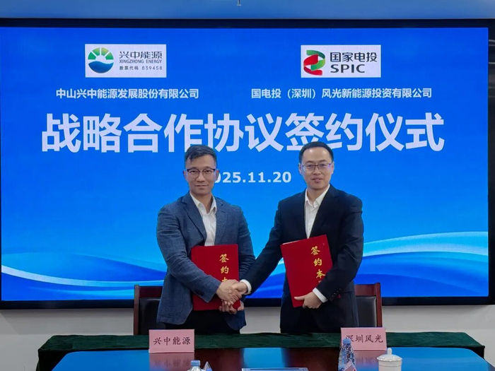 11月20日,中山兴中能源发展股份有限公司(以下简称兴中能源)与国电投(深圳)风光新能源投资有限公司(以下简称国家电投深圳风光)签订战略合作框架协议。双方将围绕综合智慧能源领域展开全方位的合作协作,重点聚焦“建筑智能化升级”“节能改造”与“零碳园区建设”等方向,共同响应国家能源战略,推动区域绿色转型,为粤港澳大湾区高质量发展注入新动能。