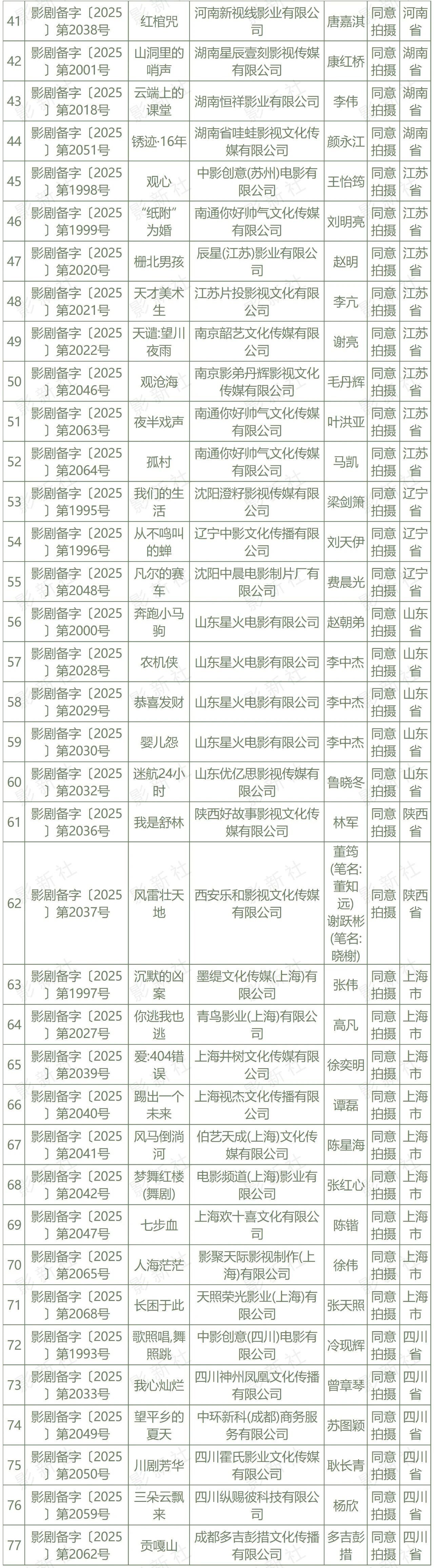 近日,国家电影局官网发布《关于2025年11月上全国电影剧本(梗概)备案、立项公示的通知》,其中十部四川题材或由四川创作团队提交的电影项目正式获准拍摄备案,显示出四川电影创作的活跃态势。