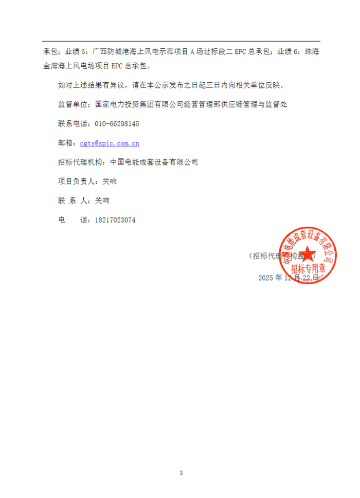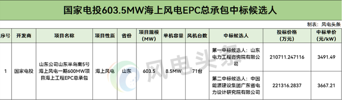 风电头条获悉,12月22日,国家电力投资集团有限公司二〇二五年度第82批集中招标(山东公司山东半岛南5号海上风电一期600MW项目海上工程EPC总承包)招标中标候选人公示。